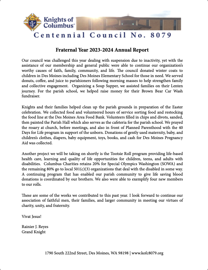 Knights of Columbus St. Philomena Parish Centennial Council 8079